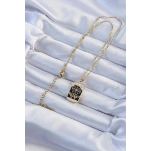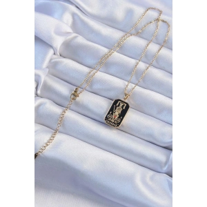 316L Çelik Zincir Altın Renk İşlemeli Siyah Mineli Tarot Kolye