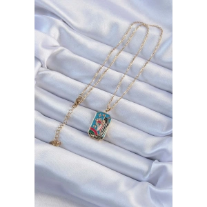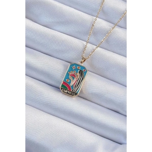 316L Çelik Zincir Altın Renk Taç ve Kız Figürlü Renkli Mineli Tarot Kolye