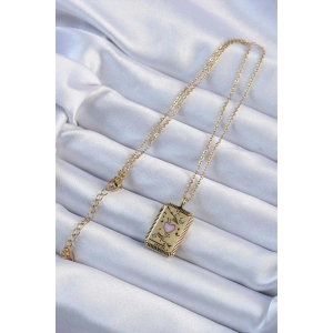 316L Çelik Zincir Eskitme Altın Renk Pembe Mineli Kalp Figürlü Tarot Kolye