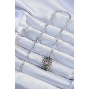 316L Çelik Zincir Eskitme Gümüş Renk Pembe Mineli Kalp Figürlü Tarot Kolye