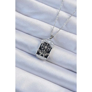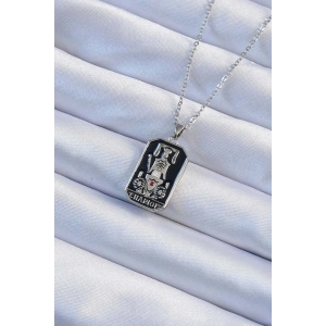 316L Çelik Zincir Gümüş Renk İşlemeli Siyah Mineli Tarot Kolye