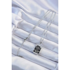316L Çelik Zincir Gümüş Renk Siyah Mineli Tarot Kolye