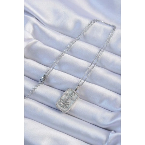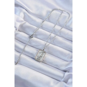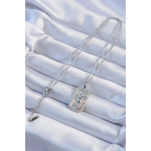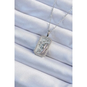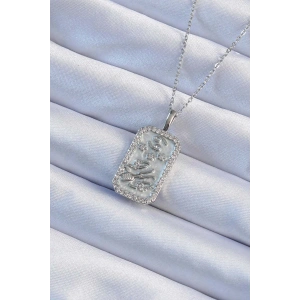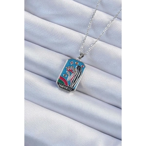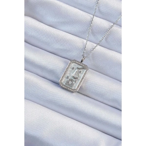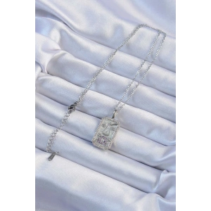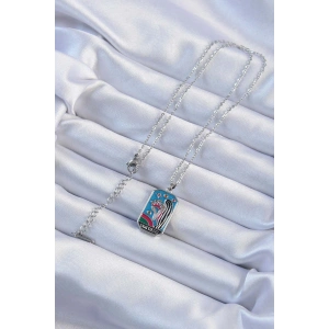 316L Çelik Zincir Gümüş Renk Zirkon Taşlı Çerçeveli Tarot Kolye