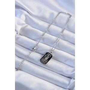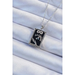 316L Çelik Zincir Gümüş Renk Zirkon Taşlı Siyah Mineli Kız Figürlü Tarot Kolye