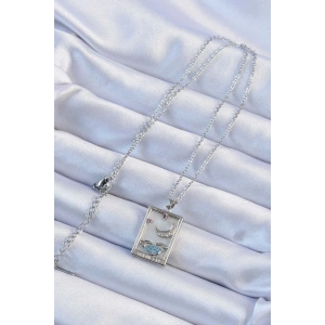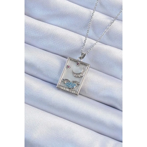 316L Çelik Zincir Gümüş Renk Zirkon Taşlı Ay Figürlü Tarot Kolye