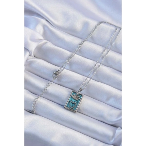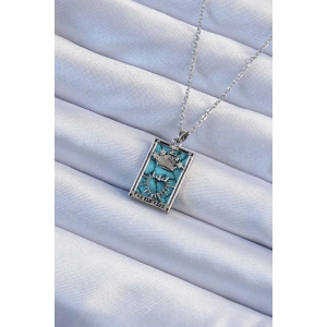 316L Çelik Zincir Gümüş Renk Zirkon Taşlı Mavi Mermer Desenli Taç Model Tarot Kolye
