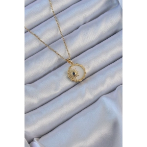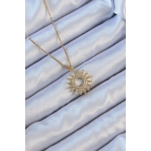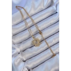 316L Çelik Zincir Altın Renk Zirkon Taşlı Parlayan Güneş Kolye