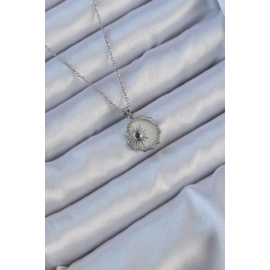 316L Çelik Gümüş Renk Zirkon Taşlı Mineli Kutup Yıldızı Kolye