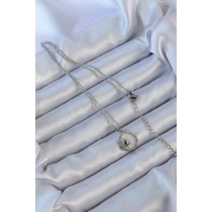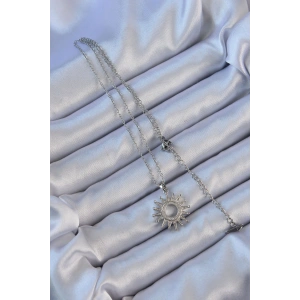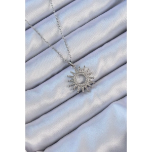316L Çelik Zincir Gümüş Renk Zirkon Taşlı Parlayan Güneş Kolye