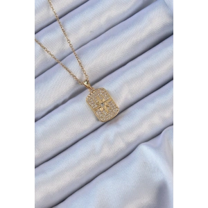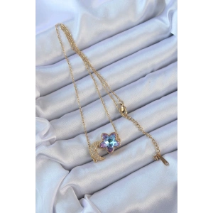 316L Çelik Altın Renk Zirkon Taşlı Mineli Kutup Yıldızı Kolye