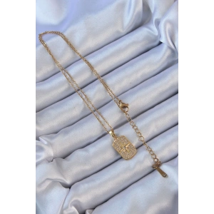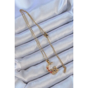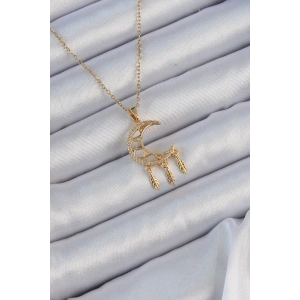316L Çelik Zincir Altın Renk İşlemeli Zirkon Taşlı Ay Kolye