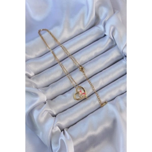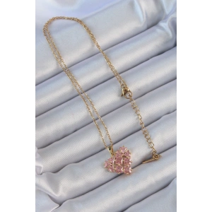 316L Çelik Zincir Altın Renk Pembe Parçalı Zirkon Taşlı Kalp Kolye