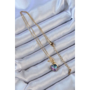 316L Çelik Zincir Altın Renk Mor Mavi Renk Zirkon Taşlı Kalp Detay Peri Kolye