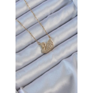 316L Çelik Zincir Altın Renk Zirkon Taşlı Kuğu Kolye