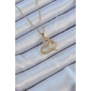 316L Çelik Zincir Altın Renk Zirkon Taşlı Yüzüklü Kalp Kolye
