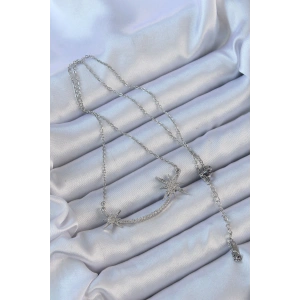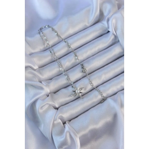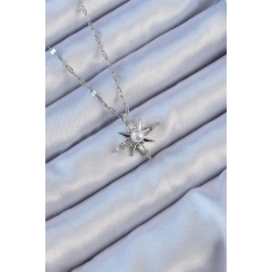 316L Çelik Zincir Gümüş Renk Baget Taşlı İnci Detay Kutup Yıldızı Kolye