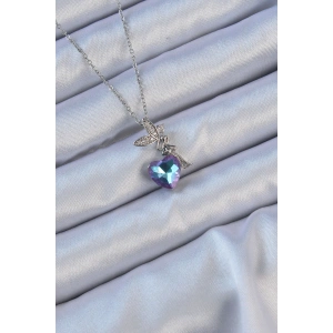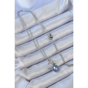 316L Çelik Zincir Gümüş Renk Mor Mavi Renk Zirkon Taşlı Kalp Detay Peri Kolye
