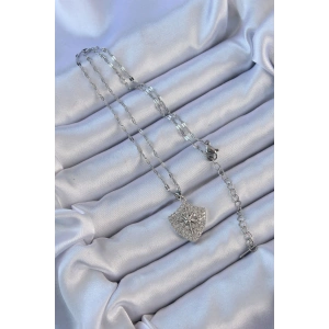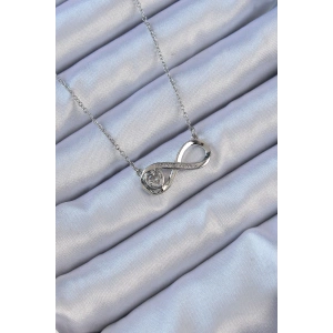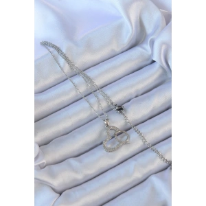 316L Çelik Zincir Gümüş Renk Zirkon Taşlı Minimal Kalp Figür Sonsuzluk Kolye