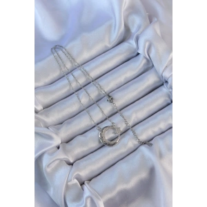 316L Çelik Zincir Gümüş Renk Zirkon Taşlı Yüzüklü Kalp Kolye