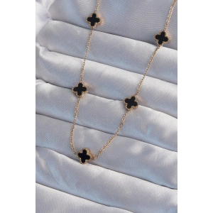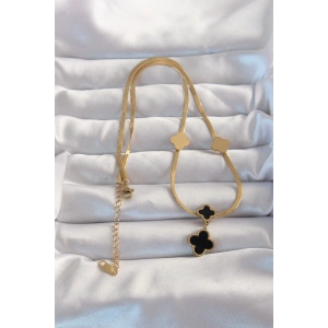 316L Çelik Gold Renk Siyah Mineli Yonca Kolye