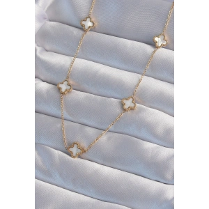 316L Çelik Gold Renk Beyaz Sedefli Yonca Kolye