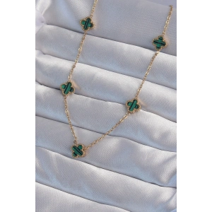 316L Çelik Gold Renk Minimal Yeşil Mineli Yonca Kolye