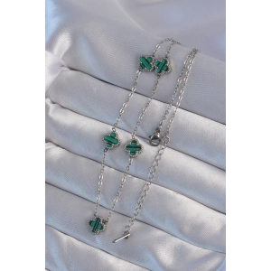 316L Çelik Gümüş Renk İtalyan Zincirli Mineli Yonca Kolye