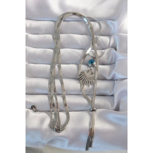 316L Çelik Gümüş Renk Zirkon Taşlı Göz Detay Nazarlı Uzun Asansör Model Kolye