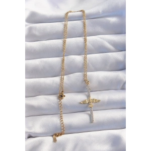 316L Çelik Zincir Gold Renkli Zirkon Taşlı Anka Kuşu Kolye
