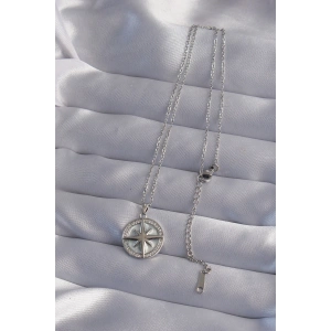 316L Çelik Zincir Gümüş Renk Zirkon Taşlı Kutup Yıldızı Kolye