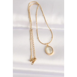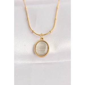316L Çelik Zincir Altın Renk Gri Sedefli Oval Figürlü Kolye