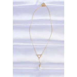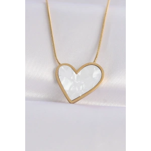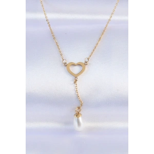 316L Çelik Zincir Gold Renk İnci Taş Detay Kalp Kolye