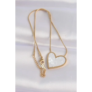 316L Çelik Zincir Altın Renk Mermer Desenli Kalp Kolye