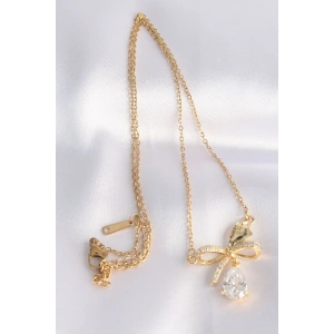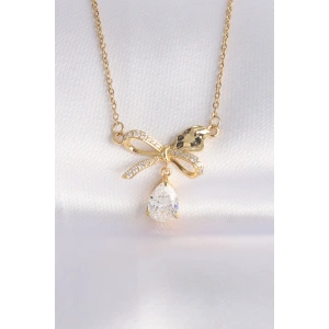 316L Çelik Zincir Altın Renk Zirkon Taşlı Damla Detay Fiyonk Kolye
