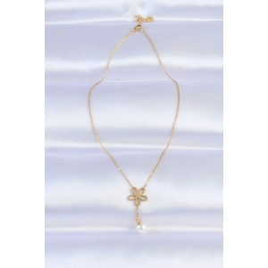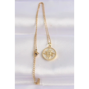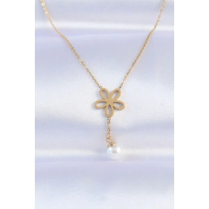 316L Çelik Zincir Gold Renk İnci Detay Çiçek Kolye