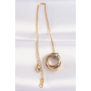 316L Çelik Zincir Altın Renk Zirkon Taşlı Fiyonk Kolye