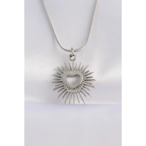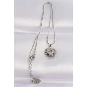 316L Çelik Zincir Gümüş Renk Kalp Güneşi Tasarımlı Kolye