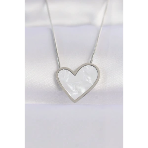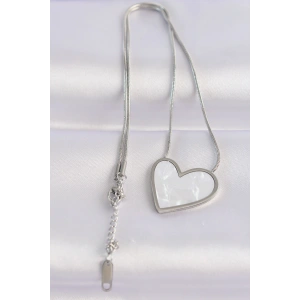316L Çelik Zincir Gümüş Renk Mermer Desenli Kalp Kolye
