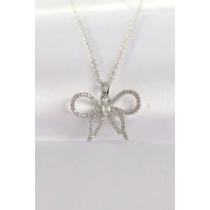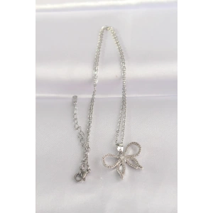 316L Çelik Zincir Gümüş Renk Zirkon Taşlı Fiyonk Kolye