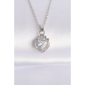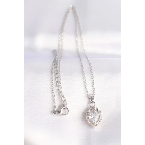 316L Çelik Zincir Gümüş Renk Zirkon Taşlı Tasarım Altın Renk Kalp Kolye