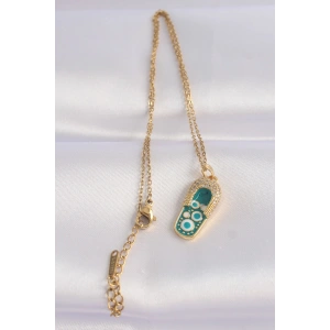 316L Çelik Zincir Zirkon Taşlı Altın Renk Nazarlı Terlik Tasarımlı Kolye