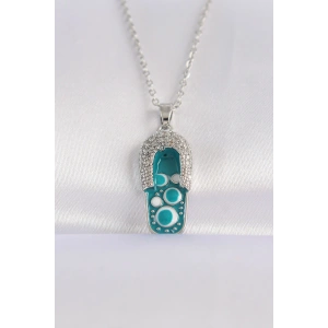 316L Çelik Zincir Zirkon Taşlı Gümüş Renk Nazarlı Terlik Tasarımlı Kolye