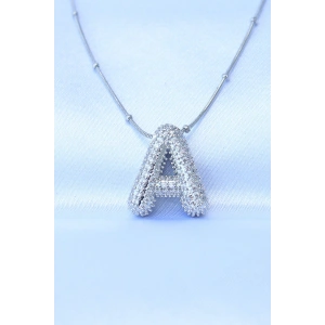 316L Çelik Zincirli Zirkon Taşlı A Harfli Gümüş Renk Bubble Kolye