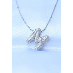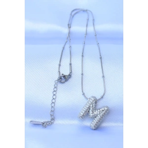 316L Çelik Zincirli Zirkon Taşlı M Harfli Gümüş Renk Bubble Kolye
