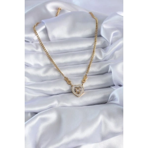 316L Çelik Gold Renk Zirkon Taşlı Kalp Model Sonsuzluk Detay Kadın Kolye