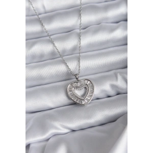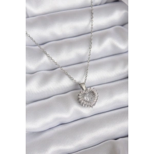 316L Çelik Zincir Gümüş Renk Zirkon Taş Detay Kalp Model Kadın Kolye
