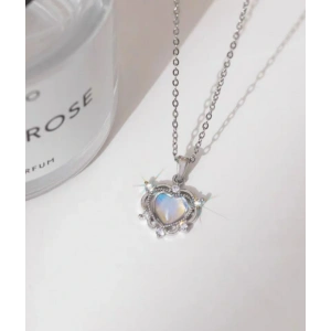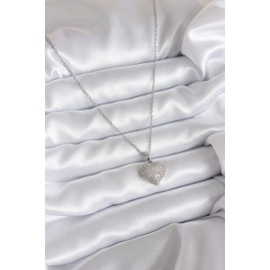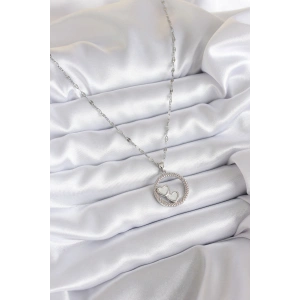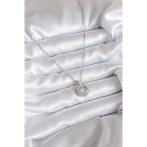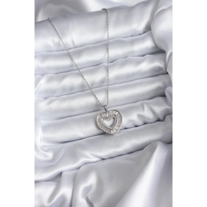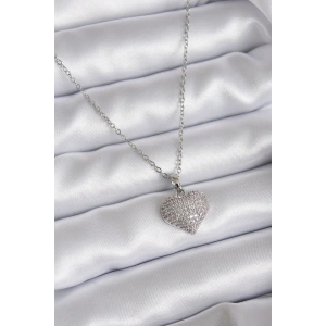 316L Çelik Zincir Gümüş Renk Zirkon Taşlı Kalp Model Kadın Kolye