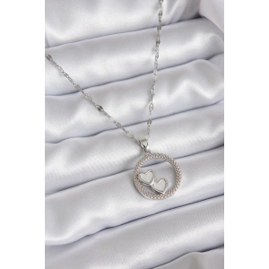 316L Çelik Zincir Gümüş Renk İşleme Detay Halka Kalp Model Kadın Kolye