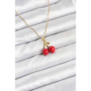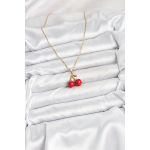 316L Çelik Zincir Gold Renk Kiraz Model Kadın Kolye