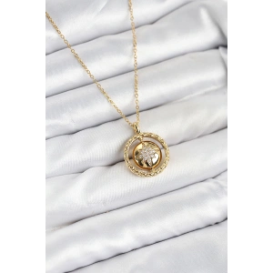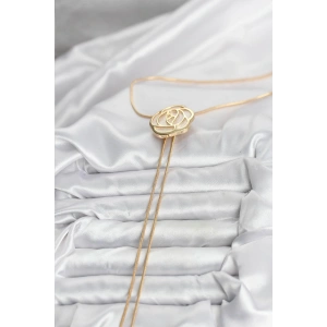 Pirinç Gold Renk Gül Model Asansörlü Kadın Kolye
